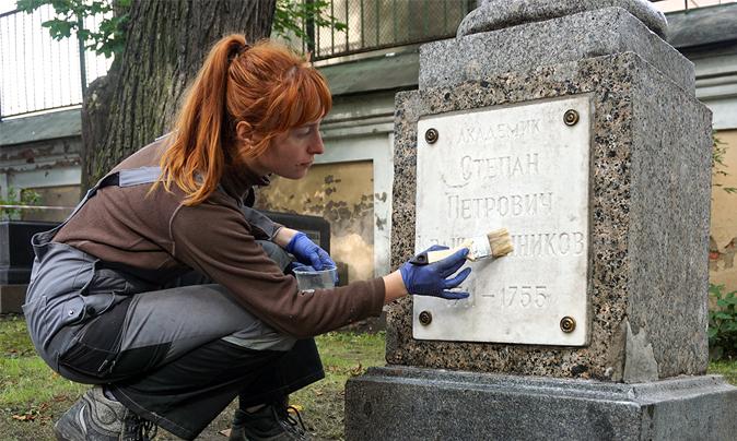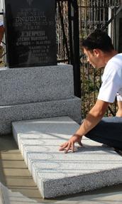 La cererea clientului, un specialist poate vizita cimitirul pentru a restabili gravarea unui portret pe un monument de granit.